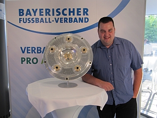 Andreas Tschorn mit der DFB-Meisterschale beim Verbandstag des Bayerischen Fußball-Verbandes am 18. Juli 2014 in Bad Gögging.